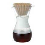 Inspired by some of our favorite Kailta brewers, this glass coffee brewer makes decadent coffee and also performs as a server. It’s composed of heat-resistant glass with a tough plastic band for comfortable pouring. A glass Wave dripper sits on a steel wire cradle to ensure proper airflow while the 20-wave filter that works rhythmically to limit contact between each other. This is a unique pour-over coffee brewer for any table or café.
